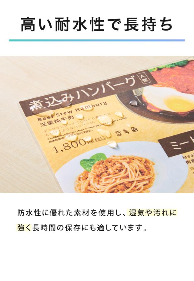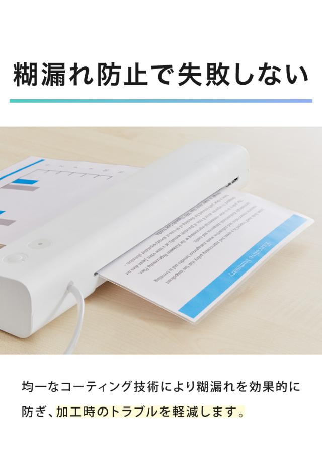 ラミネーター専用フィルム、印刷物保護、パンフレット、資料、名刺、はがき、メニュー、写真、透明度高、グロス、耐水性、3層構造、長持ち、反りを防ぐ、A3、A4、A5、100枚、剥がれにく、気泡なし、糊もれ防ぎ、汚れ防止、ラミネート加工、事務用品、高品質、100μm、光沢あり、光沢仕上、高耐久、業務用、家庭用、オフィス用、はがき、名刺、写真、年賀状、アイドルカード、賞状、書類、ラミネートフィルム、お徳用、100枚入、100マイクロメートル、ラミネーター
