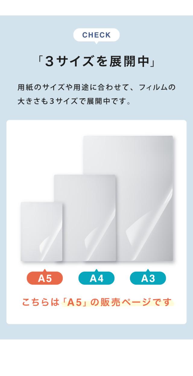 ラミネーター | ラミネートフィルムA5サイズ | ラミネートフィルムA4サイズ | ラミネートフィルムA3サイズ |