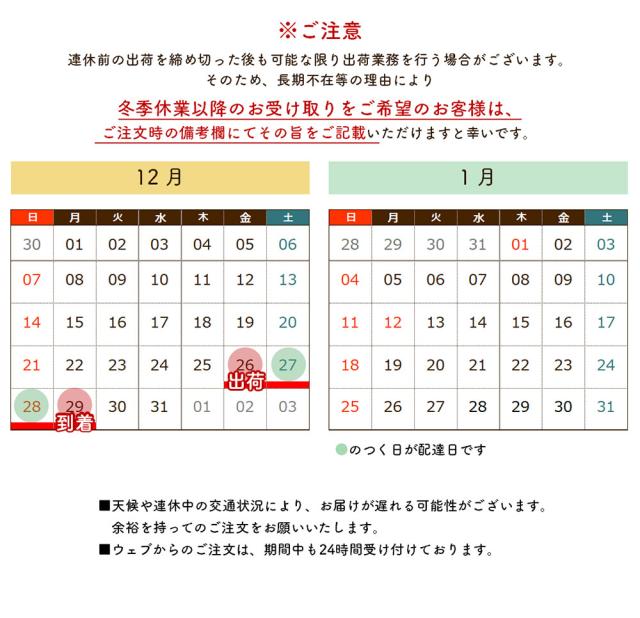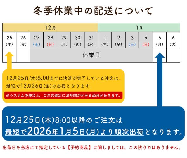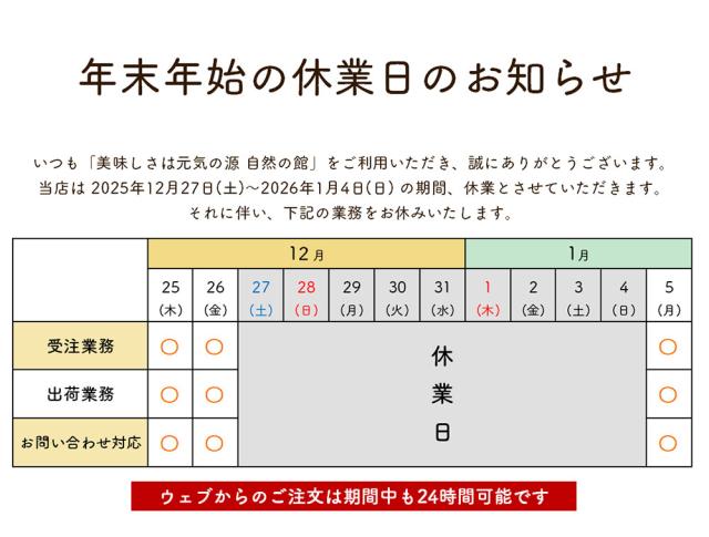 年末年始の休業日のお知らせ
