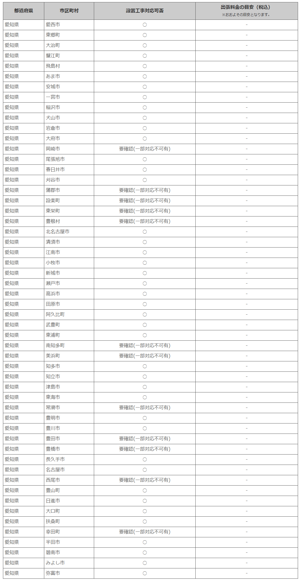 愛知県 ※離島・山間部他 一部地域は工事エリア外となります。出張料がかかる地域がございます。