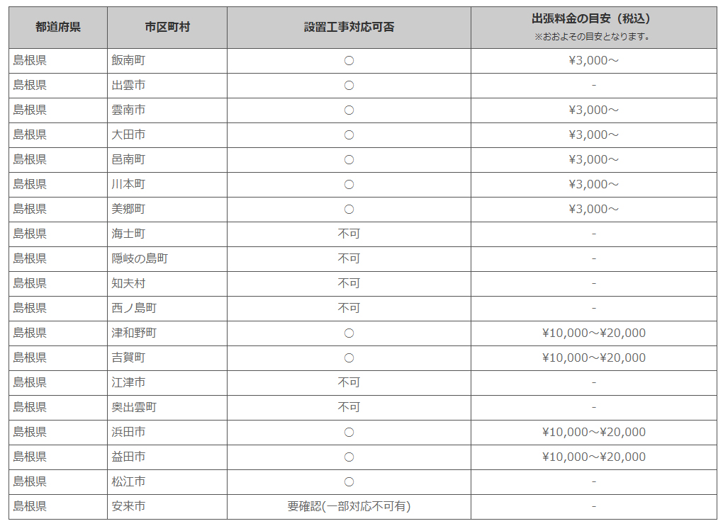 島根県  ※離島・山間部他 一部地域は工事エリア外となります。出張料がかかる地域がございます。