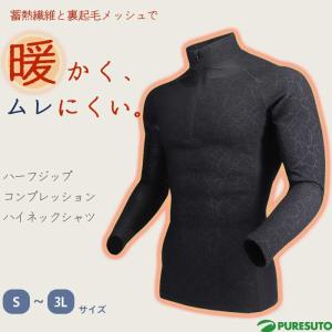 蓄熱 ハーフジップ コンプレッション ハイネックシャツ メンズ 裏起毛メッシュ ハイブリッドウェア 長袖