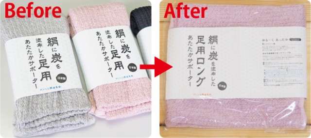 本来は左のような包装をされていますが、厚さ3cmを大幅に超えてしまう為、このままではクリックポストでの発送が出来ません。 右のように商品を広げ厚さを抑え、クリックポストに対応できるサイズに包装し直します。帯状の包装紙は広げた状態で同封いたします。 ※こちらは一例となります。 |