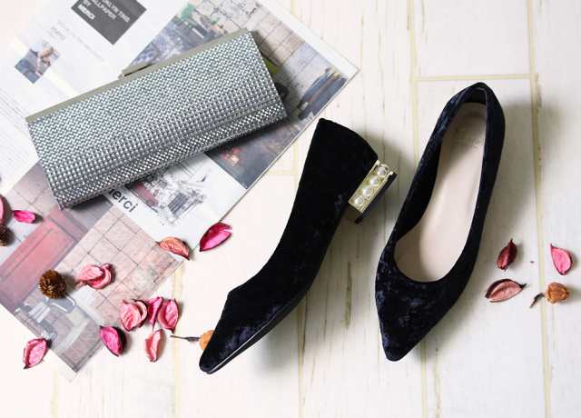 結婚式にピッタリな低ヒールパンプスがこちら。小さいお子様を抱っこしていたり、妊婦さんでも安心して履くことができます。
