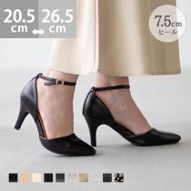 パンプス 走れる 歩きやすい レディース ストラップ 幅広 ポインテッドトゥ 7.5cm チャンキーヒール 4e 結婚式 入学式 送料無料