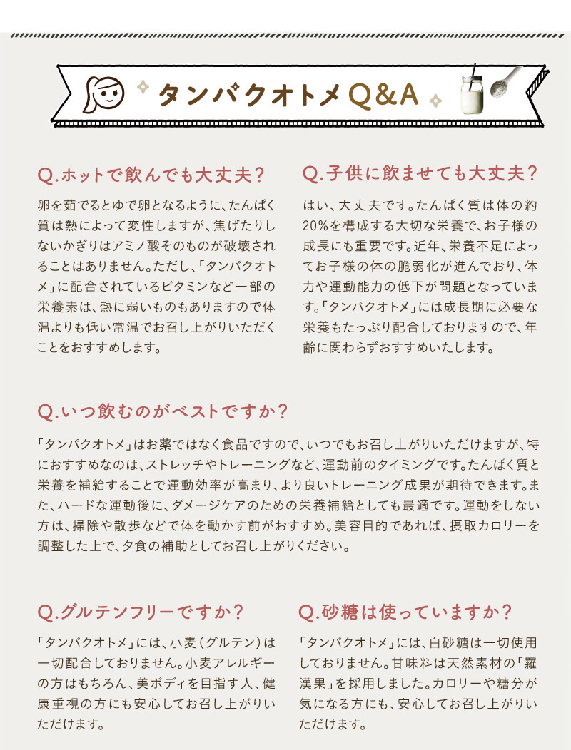 タンパクオトメ「よくある質問」