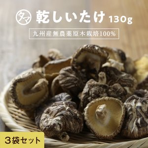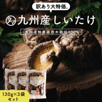 九州産しいたけ130g×3袋セット 送料無料 ギフト外の訳あり特価!自然の中で育った無農薬の原木栽培しいたけがこの量・価格!お料理に・