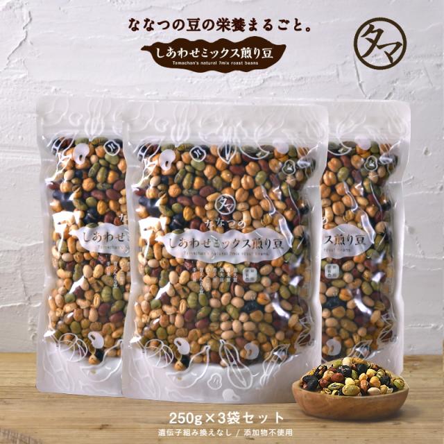 ななつのミックス煎り豆 (200g×3袋セット) そのまま大豆の栄養をサクサク食べれる無添加ヘルシーな焙煎大豆・黒豆・青大豆ミックス ま