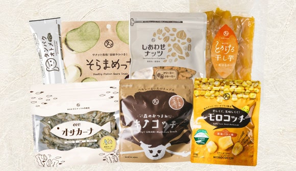 スタッフが厳選した健康的なおやつを7種類お届け。