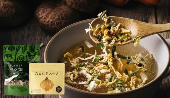 お湯を注ぐだけで簡単に栄養満点のスープが完成します。
