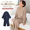 パジャマ レディース 綿100% 長袖 秋 冬 前開き ボタン 二重構造 ふっくら暖かく柔らかい ネル起毛 先染め 杢調 無地 ネイビー モカ M L
