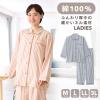 パジャマ レディース 綿100% 長袖 秋 冬 前開き ボタン 中厚手のネル起毛 先染め ストライプ柄 ブルー オレンジ M L LL 3L 親子 おそろ