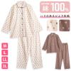 パジャマ レディース 綿100% 長袖 春 秋 前開き ボタン ほのぼのモノグラム クマ柄 キャラメル モカ M L LL 3L かわいい おそろい