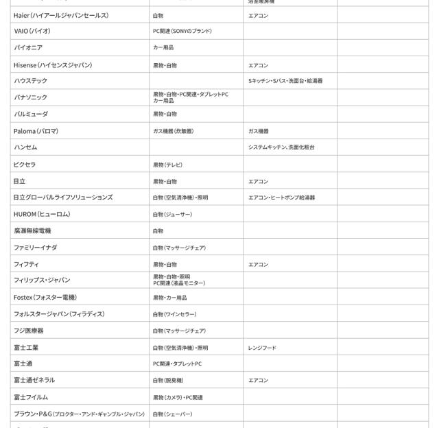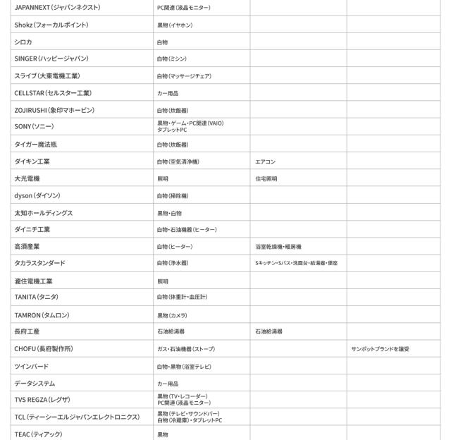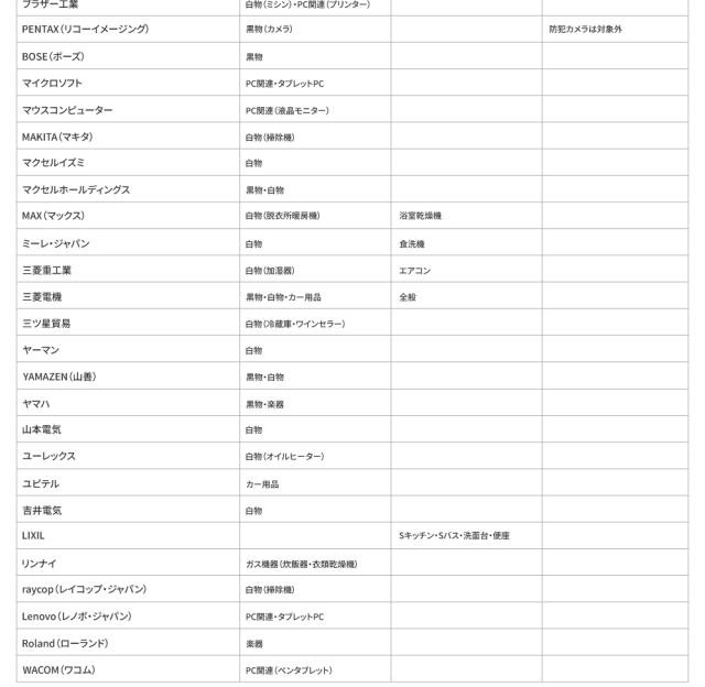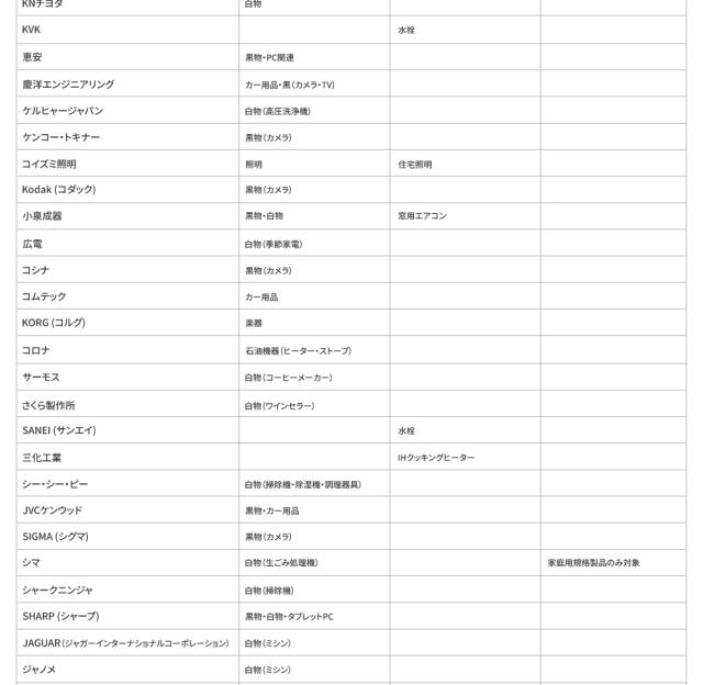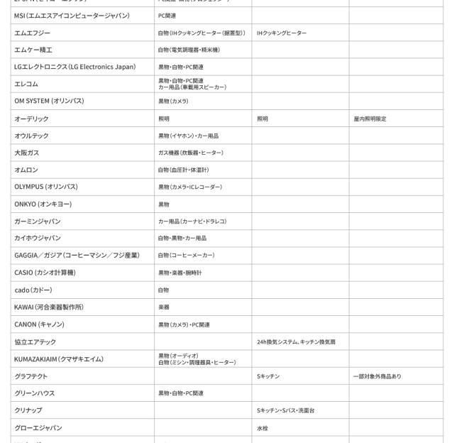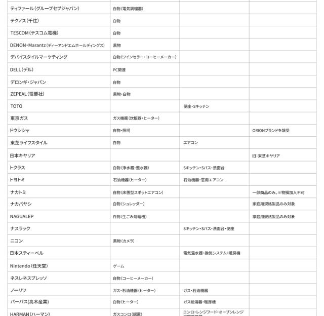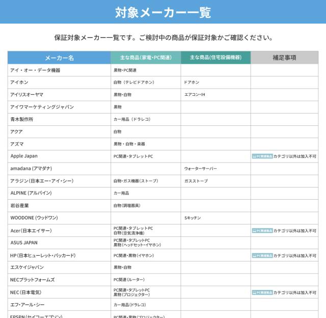 対象メーカー一覧|延長保証