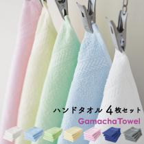 おしぼり ハンカチに 《ハンドタオル 4枚セット》綿100% 吸水性が良いガムシャタオル 速乾で衛生的 薄手でコンパクト[ゆうパケット]