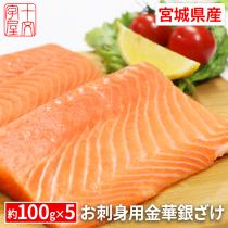 宮城県産お刺身用金華銀ざけ 骨なし皮なし 食べ切りサイズのポーションカット 約100g×5 送料無料 プロも絶賛!安心と安全の純国産サーモ
