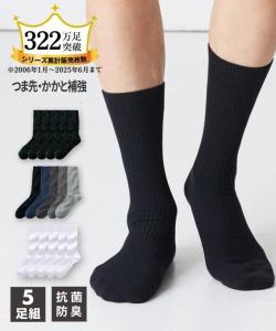 靴下 メンズ 抗菌防臭 無地リブ クルー ソックス 5足組 モノトーン/黒 25.0〜27.0cm ニッセン