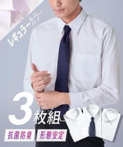ワイシャツ ビジネス メンズ 抗菌防臭形態安定 長袖 3枚組 レギュラー カラー 白 M/L ニッセン nissen