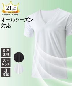 メンズ 吸汗速乾 なめらか ストレッチ 深Vネック 半袖 3枚組 夏 肌着 トップス M/L/LL ニッセン nissen