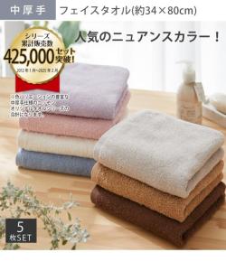 フェイスタオル 肌ざわりいい 中厚手 5枚セット デイリーシリーズ カフェカラー〜ラベンダー 約34×80cm ニッセン nissen