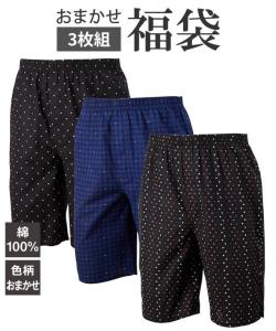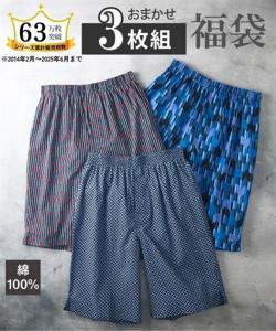福袋 メンズ ロング トランクス 3枚組 おまかせ 綿100% 前ボタン開き プリント M/L/LL 下着 インナー ニッセン nissen