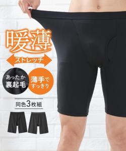 ボクサーパンツ メンズ あったか裏起毛 前開き ロングボクサーパンツ 3枚組 冬 M/L/LL ニッセン nissen