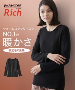 インナー 大きいサイズ レディース ウォームコアリッチ 裏起毛 襟ぐり狭め 長袖 吸湿発熱 UVカット 冬 肌着 女性 S/M/L/LL/3L ニッセン