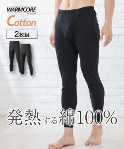 メンズ ウォームコアコットン あったか 綿100% 吸湿発熱 前開き 9分丈 タイツ 2枚組 冬 インナー 男性 肌着 下着 M/L/LL ニッセン niss