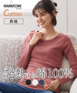 インナー レディース ウォームコアコットン 綿100% ロング丈 長袖 吸湿発熱 UVカット 秋 冬 肌着 女性 | S/M/L | ニッセン nissen