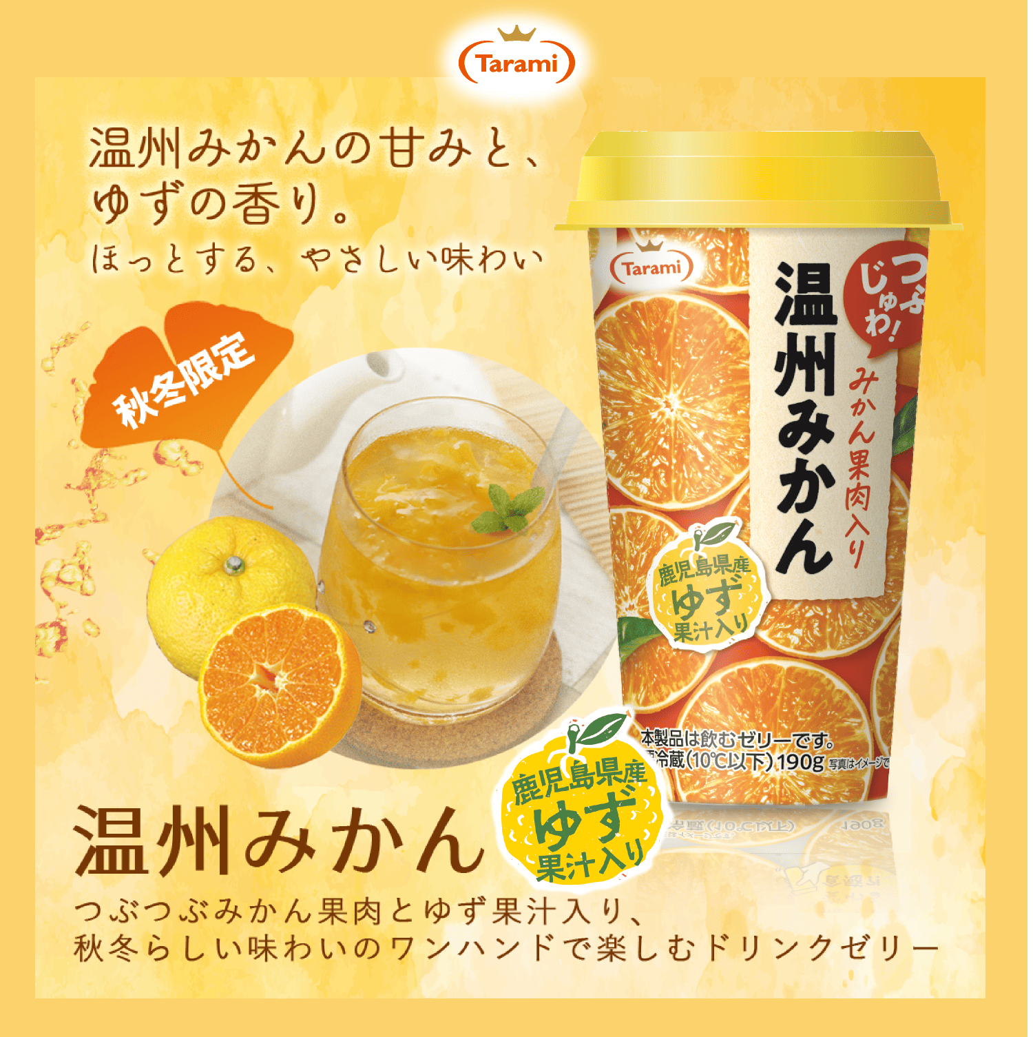 【9%OFF&送料込み】たらみ ドリンクゼリー Tarami 温州みかん ゆず果汁入り 190g 30本セット ※クール便(冷蔵)・同梱不可 ※北海道・沖