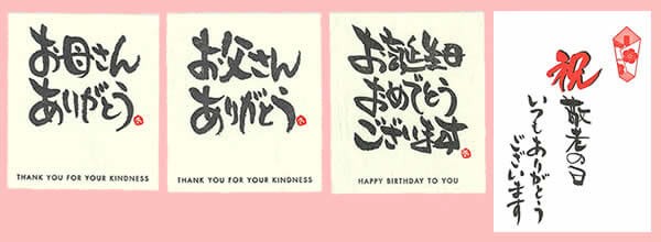 ・御中元・暑中御見舞・残暑御見舞・御歳暮・御年賀・寒中御見舞・内祝(蝶結び・結び切り)・寿(蝶結び・結び切り)・御祝(蝶結び・結び切り) ・御礼(蝶結び・結び切り)・粗品(蝶結び)・無地のし(蝶結び・結び切り)・快気祝(結び切り)・御見舞(結び切り)
