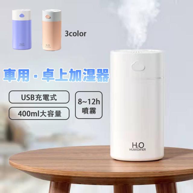 加湿器 卓上 お手入れ簡単 静音 節電 超細微ミスト USB給電式 400ml 超音波式 超静音 小型 車用加湿器 空焚き防止 部屋 車載 寝室 オフィ