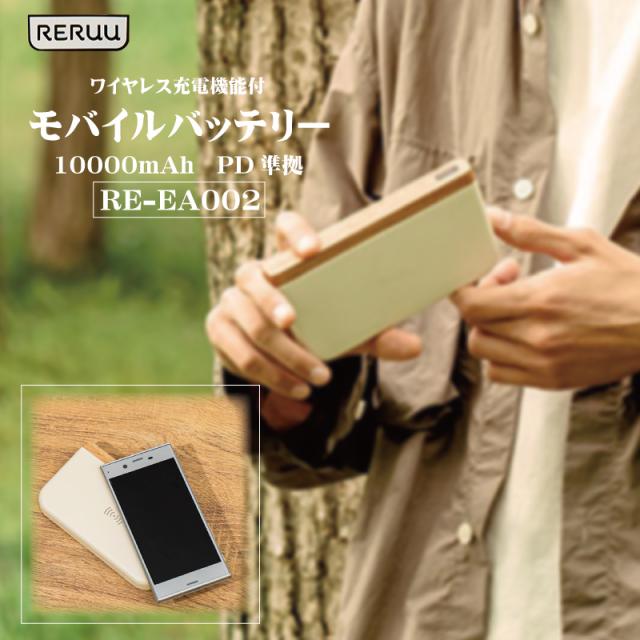 モバイルバッテリー 10000mAh ワイヤレス充電 PD準拠 RE-EA002 【RERUU】 天然木 置くだけ充電 充電器 ワイヤレス充電 モバイル用品 携帯