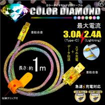 【在庫処分】急速充電対応 カラーダイヤモンド USBケーブル Lightning Type-C iPhone アイフォン iPad android アンドロイド 高品質 ナイ