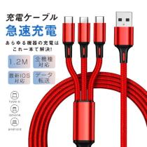 充電ケーブル 3in1 usb スマホ Android 3台同時充電 iOS アンドロイド 3つのコネクター iPad用充 電コード usbケーブル 急速充電
