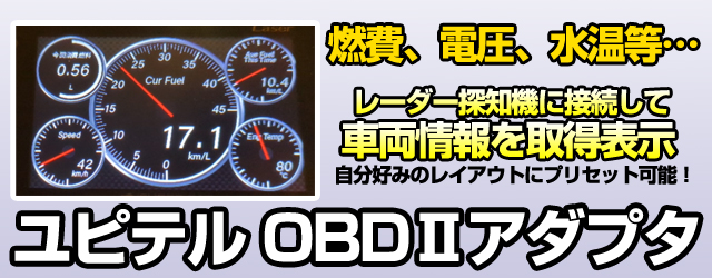 レーダー探知機にオプションのOBD2アダプタを接続すると、電源を取れると同時に車両の様々な情報を探知機本体に表示させ、マルチメーターとして活用することができます。