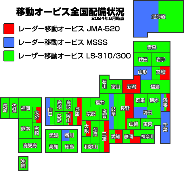 レーザー式に関してはほぼ全国で運用されており、最も多く見られるのが「LSM-300」