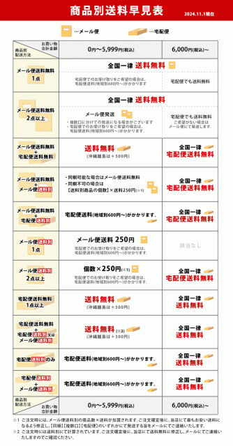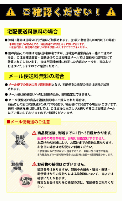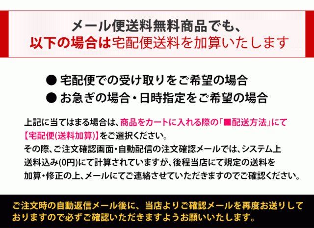 ※メール便送料無料商品で、1点で6,000円以上の商品は、宅配便でも送料無料です。